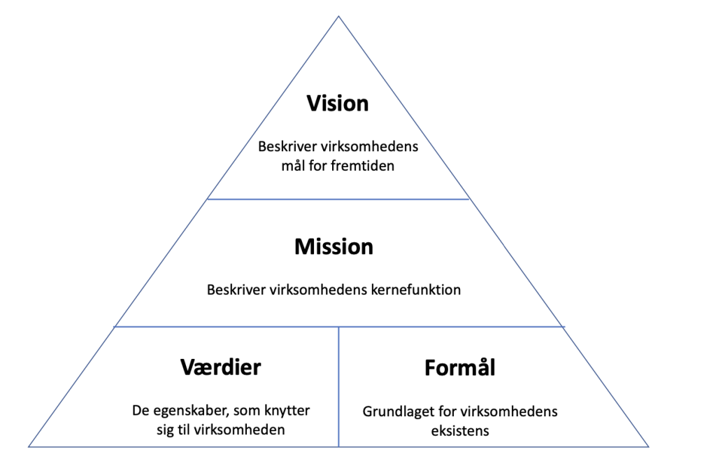 Inden beskrivelse af de klassiske begreber; mission, vision og værdier, startes med selve formålet.